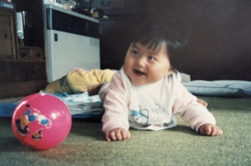 1984年4月、加賀市民の父と小松市出身の母のもとに生まれました。長い陣痛の末に生まれたので、さぞ大きな子だろうと父は思ったそうですが、2,480gの未熟児でした。